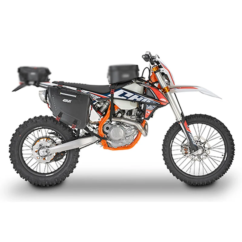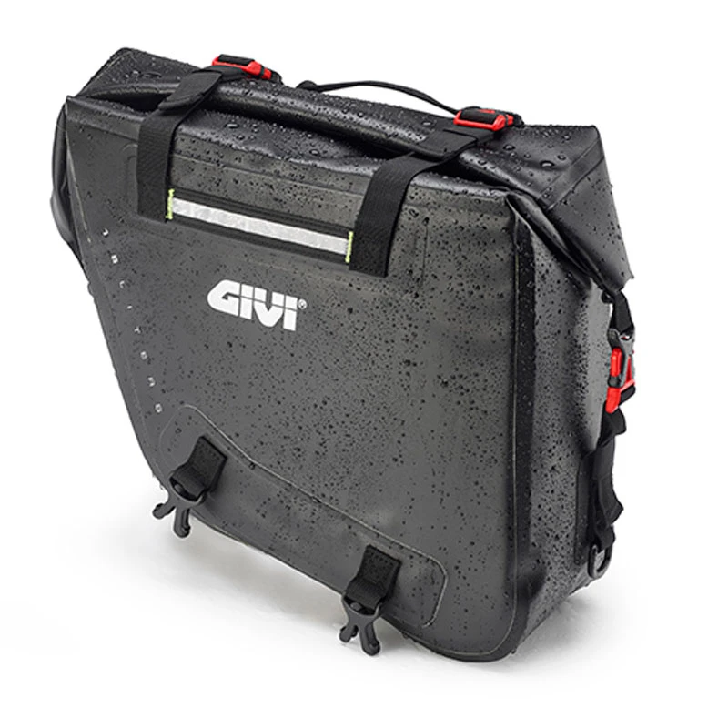 Pareja de alforjas laterales Givi GRT718 impermeables en color negro. Ambas de 15 L, con interior de color amarillo. Estudiadas para moto Enduro off road