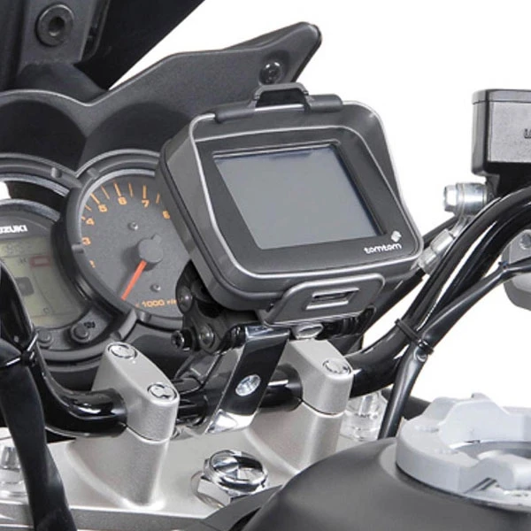 Soporte giratorio de GPS de SWMotech para manillar con tubo de 28 mm, con amortiguación de vibración. Plateado cepillado.