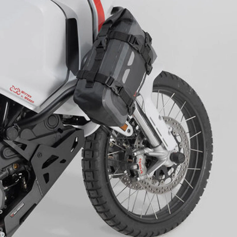 Se puede fijar a la protección lateral de motor, al asiento trasero o al portaequipaje, donde cumple perfectamente su función como práctico espacio de almacenamiento para infinidad de usos. La Drybag 80 también puede fijarse a modelos más grandes (de la Drybag 350 en adelante) o simplemente usarse como bandolera.
