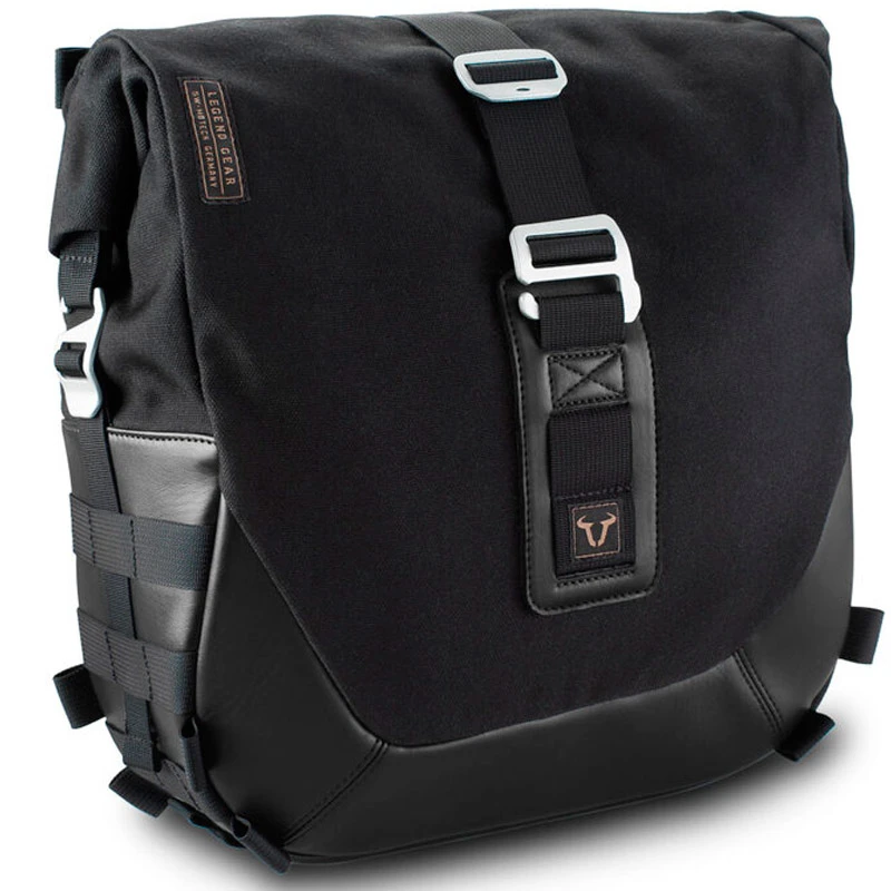 Maleta Legend Gear LC2. Combina una óptica clásica y un manejo conforme a la época. Se monta y desmonta en pocos pasos en el SLC soporte de maletas laterales mediante un sistema de cierre rápido. Protección contra la lluvia gracias al cierre por enrollado, material resistente al agua y bolsa interior impermeable.