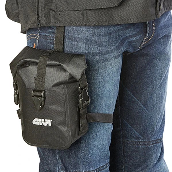 Bolsa Givi de pierna impermeable. para mayor comodidad incluye correas elásticas y regulables en la pierna para adaptarla fácilmente.