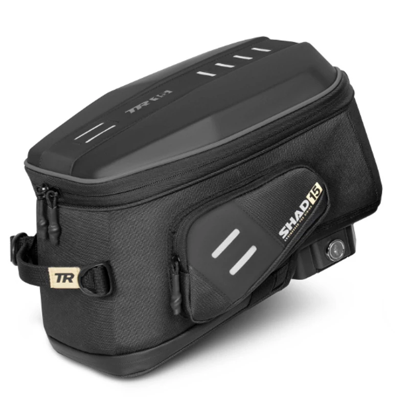 – PU + Hypalon.Ajustable a la forma del depósito gracias a su bolsillo expandible.