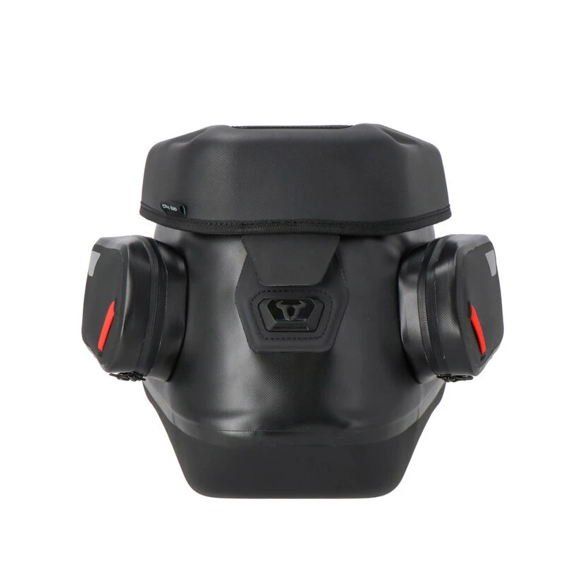 Con un volumen de equipaje de 9 litros, ofrece un espacio permanentemente seco para todas tus pertenencias, sin que haga falta ninguna capota para la lluvia ni un bolsillo interior adicional. La pared separadora ajustable en el compartimento interior, con compartimento de malla adicional, garantiza una organización inteligente del equipaje. Los bolsillos exteriores están provistos de cremalleras impermeables y, por lo tanto, también son completamente impermeables.