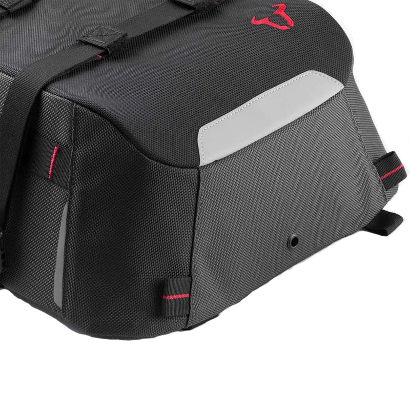 Combina muy bien con Sysbag 10, gracias a las correas integradas con gancho y cintas SysBag. Para fijarlo en la motocicleta solo es necesario la correa de cinta suministrada.