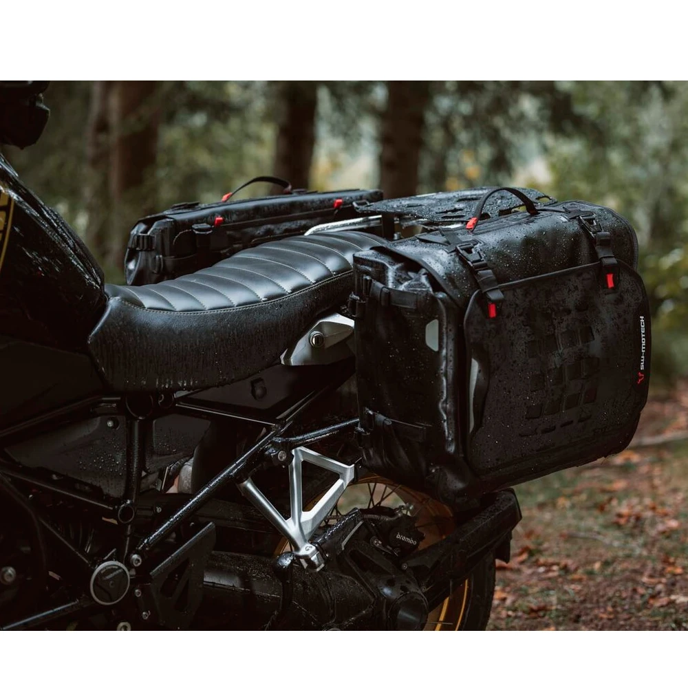 Montaje en el soporte lateral derecho o izquierdo PRO o EVO o en portaequipajes SW-MOTECH con la placa adaptadora opcional que se indica