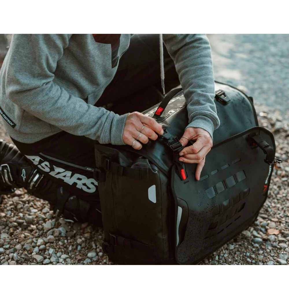 Bolsa de SWMotech de la línea Sysbag WP talla L impermeable, con una capacidad de 27 litros expandible a 40 litros.