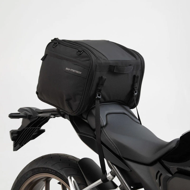 Bolsa trasera Sw Motech ION M con un diseño discreto y elementos reflectantes para una mayor seguridad en la carretera.
