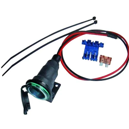 Conector toma de corriente para su instalación en la moto, muy útil para dar suministro eléctrico durante el viaje a dispositivos como el gps, smartphone o intercomunicadores