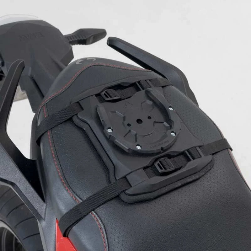 Base universal de la marca Sw-motech para montar una bolsa sobredepósito en el sillín, en el lugar del pasajero. Modelo SW-PRO SEAT. Para distintas bolsas SWmotech.
