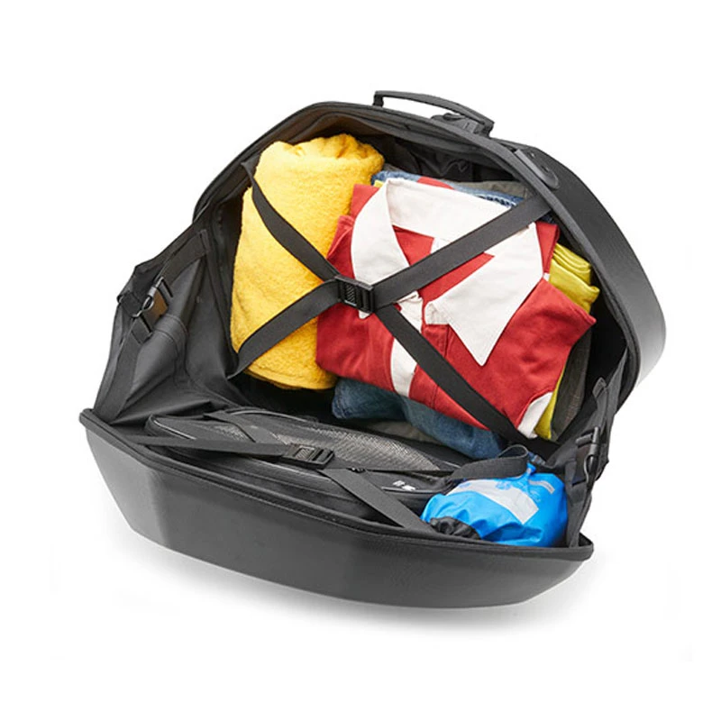 Su diseño aerodinámico las rinde especialmente apropiadas para motos deportivas y el proceso de termoformado confiere a las alforjas una capacidad total de carga.