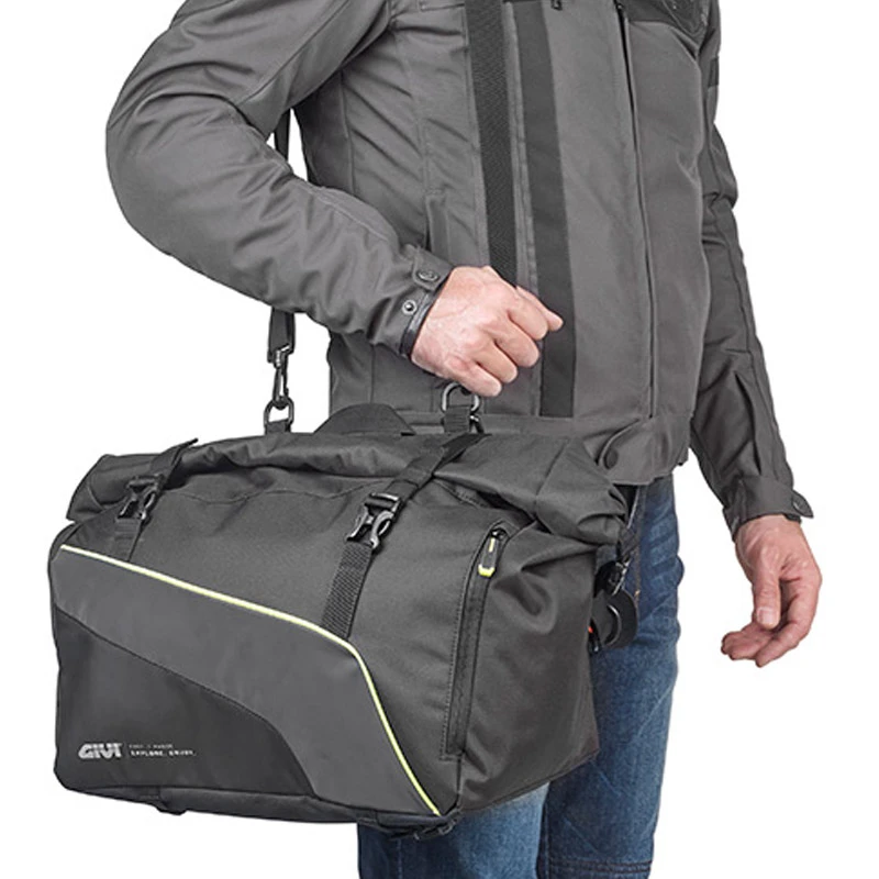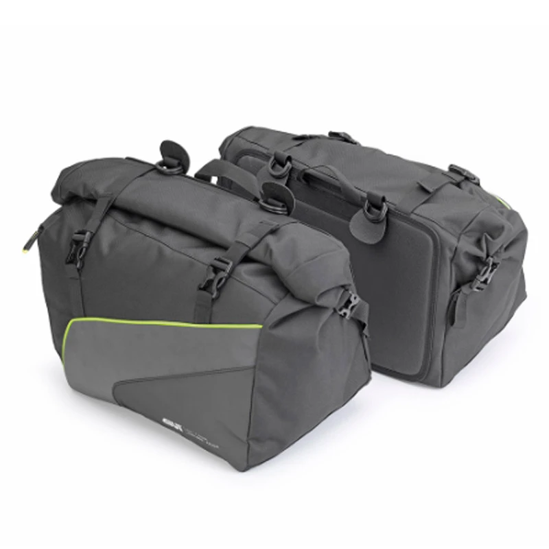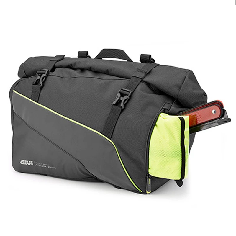 Pareja de alforjas Givi impermeables modelo EA133, fabricada en poliester con ribete reflectante en color amarillo.