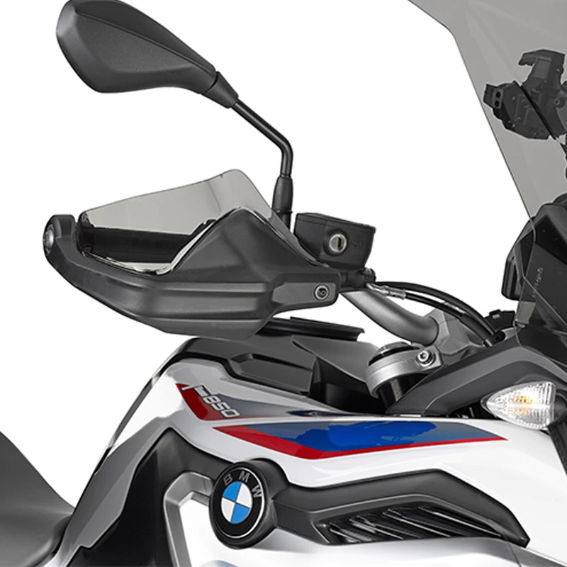 Extensión Giv para el paramanos original de BMW F 850 GS 2019+. Está fabricado en plexiglas ahumado.