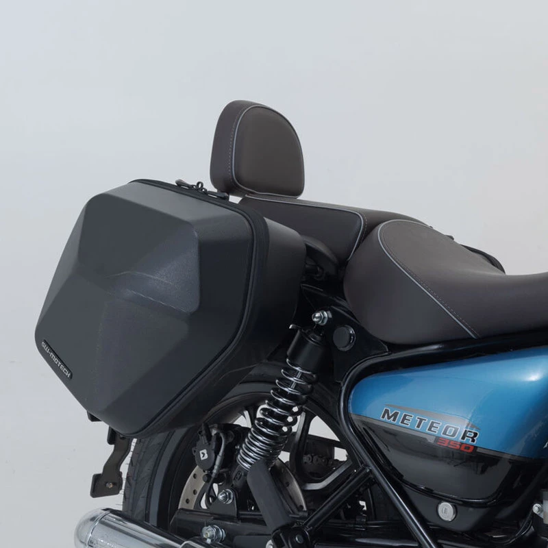 Juego de maletas laterales URBAN y soportes laterales de SW Motech para su instalación específica en ROYALD ENFIELD METEOR 350 2021+.