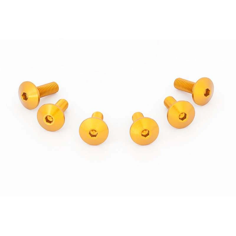 Kit de tornillerÃa en ergal 7075 T6 para cúpula.La tornillerÃa Evotech se fabrica en ergal 7075 T6 mecanizado CNC.Gracias a las caracterÃsticas de su material, la tecnologÃa y maquinaria empleados, tiene un peso un 40% inferior respecto a la tornillerÃa de acero y una excelente resistencia.Para su montaje es suficiente con desmontar uno a uno los tornillos originales y montar en su lugar los tornillos de la misma medida incluÃdos en nuestro kit. Se aconseja lubricar ligeramente la rosca de los tornillos para su montaje.Kit disponible en colores negro, plata, dorado, azul, rojo y verde (según modelos).