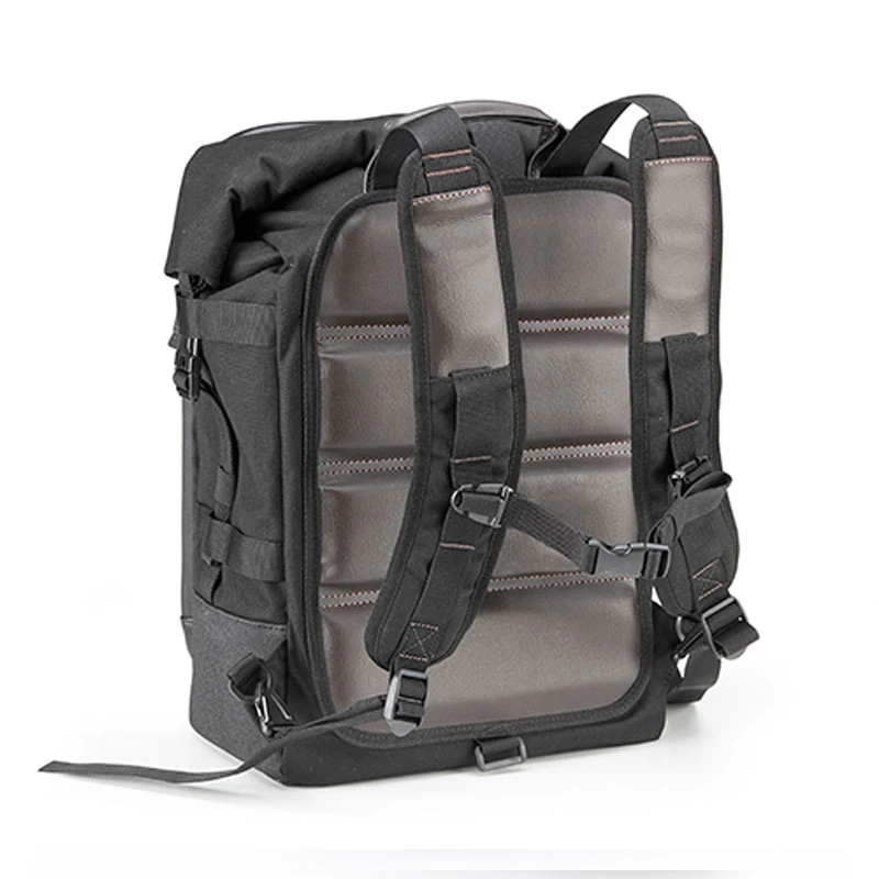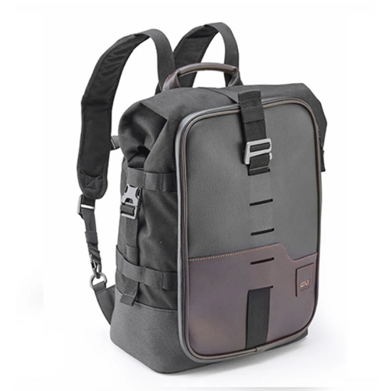 Mochila Givi modelo CRM101 Corium que cuenta con tiras retráctiles que permiten el montaje como una bolsa sillín. Con 18 litros de capacidad, cierre roll top y bolsa interior extraíble e impermeable.