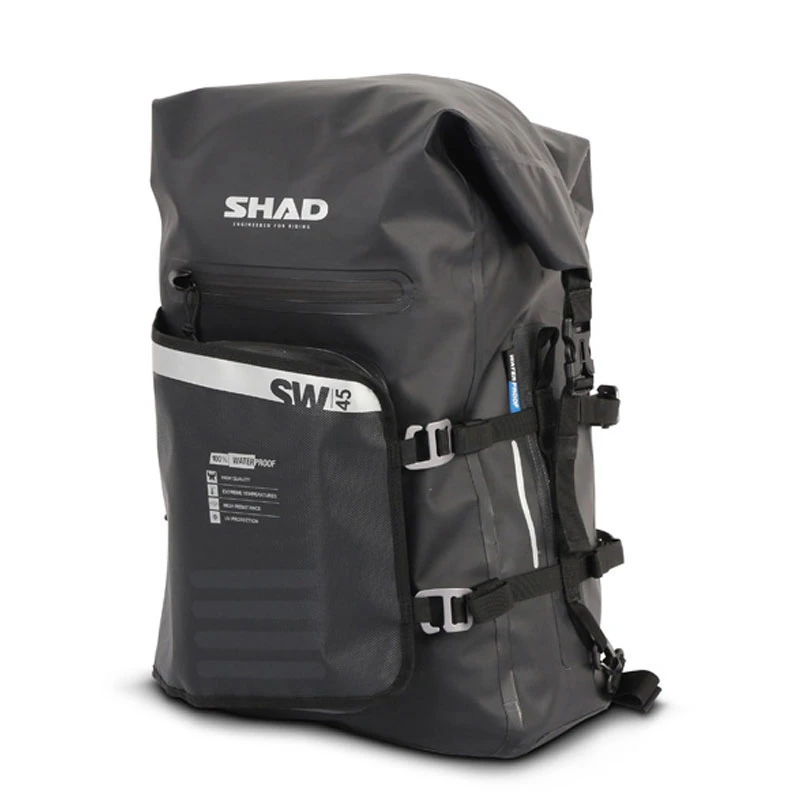 Bolsa trasera IPX5 100% impermeable SW45 de la marca Shad con capacidad para 40 litros. incluye reflectantes para una mayor visibilidad.