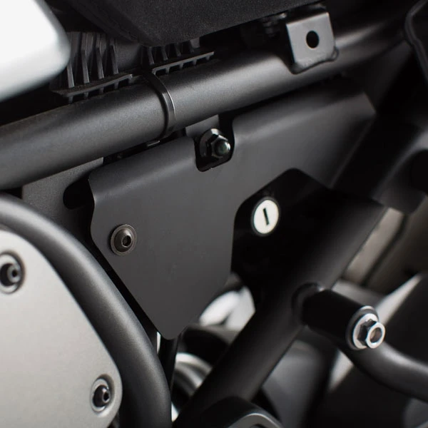 Protector para depósito de líquido de frenos para su montaje en YAMAHA XSR 900 2016- de SWMotech. Previene la retirada involuntaria de la tapa del depósito de líquido de frenos. Color negro.
