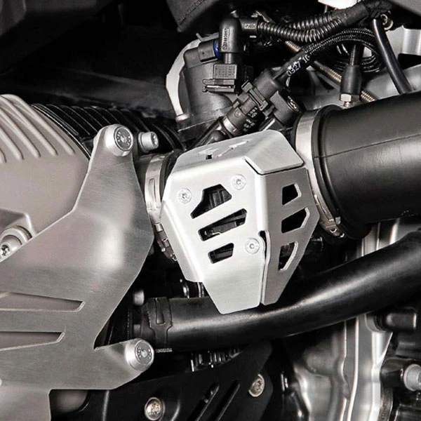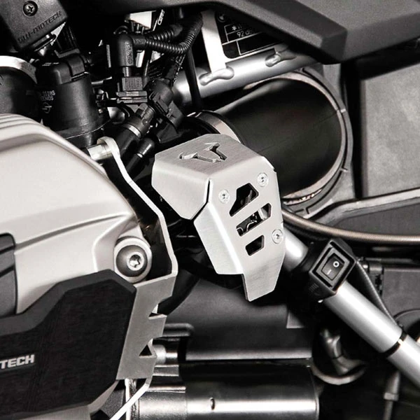 Protector de potenciómetro para su montaje en BMW R 1200 GS 2008-2012 y R nineT 2014- de SWMotech. Fabricado en aluminio cepillado, se monta fácilmente en la moto. Color plateado anodizado.