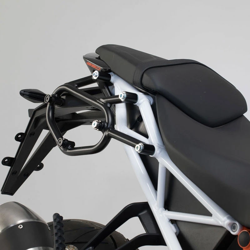 Soporte lateral izquierdo SLC de SWMotech para montaje de una maleta lateral en KTM 1290 Super Duke 2016-. Realizado en tubos de acero. Incluye instrucciones de montaje.