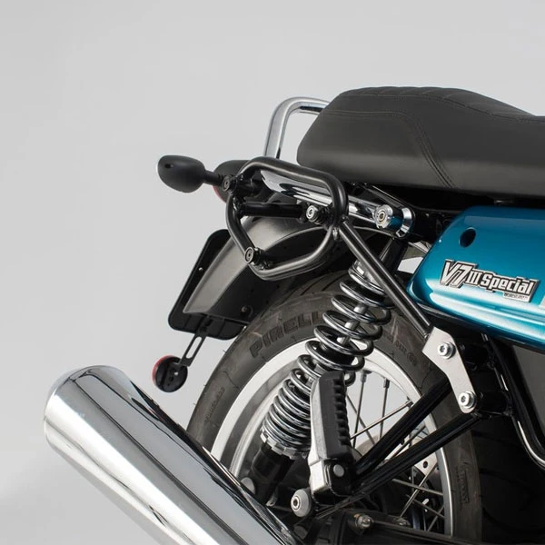 Soporte para maletas laterales SLC para su montaje específico en MOTOGUZZI V7 III 2017-.Está fabricado en acero tubular, de color negro, garantiza el soporte seguro de las bolsas LC1 y LC2.