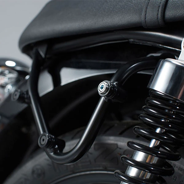 Soporte para maletas laterales SLC para su montaje específico en TRIUMPH BONNEVILLE T100/SE 2004-2016,SCRAMBLER 2005-,THRUXTON 900 2004-2007 y 2008-2015 de SWMotech. Se adapta a la estética exterior.