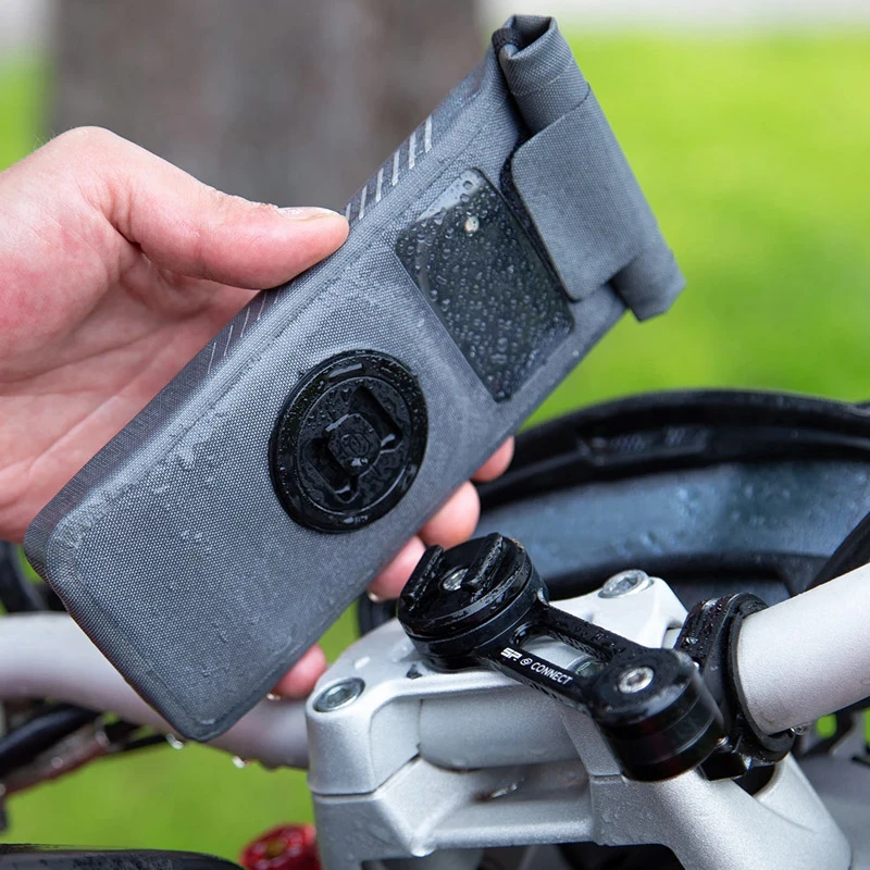 Soporte móvil moto de SP Connect para el montaje en el manillar de la moto. Incluye soporte moto mount y funda universal.
