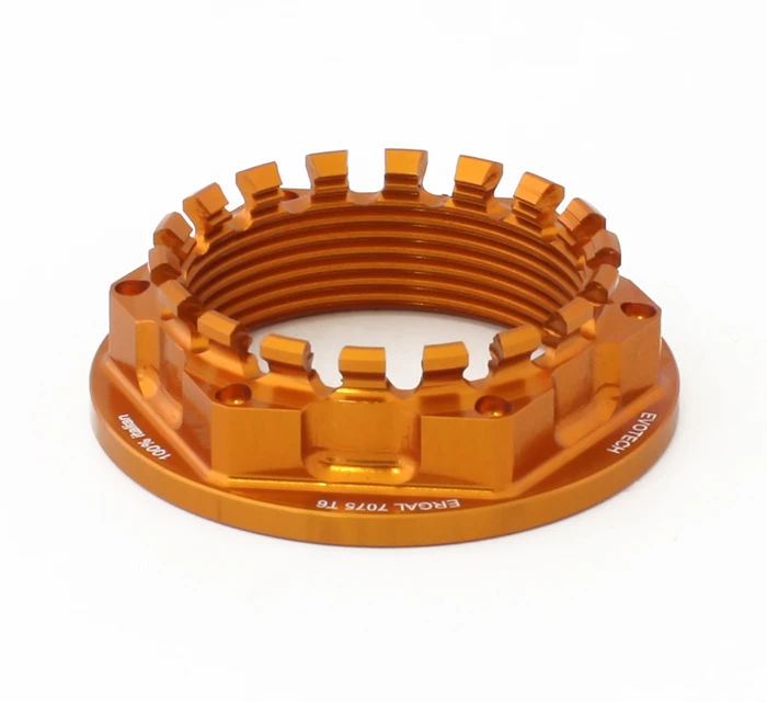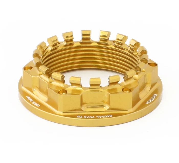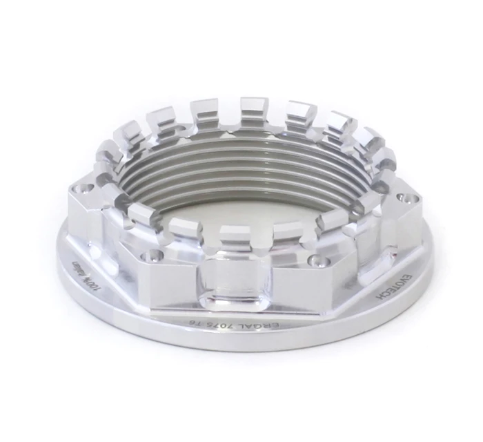 Las tuercas Thunderbolt de Evotech están fabricadas en Ergal 7075 T6 mediante precisa maquinaria CNC.